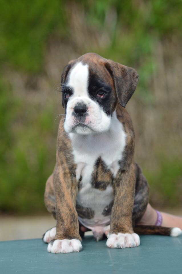 | Couleur | Bringé marqué en blanc |