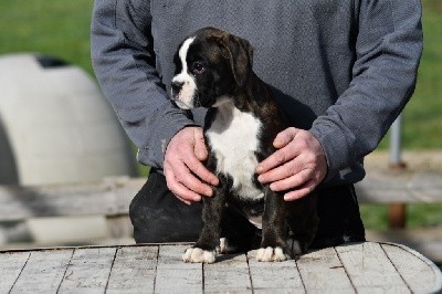 | Couleur | Bringée marquée en blanc |