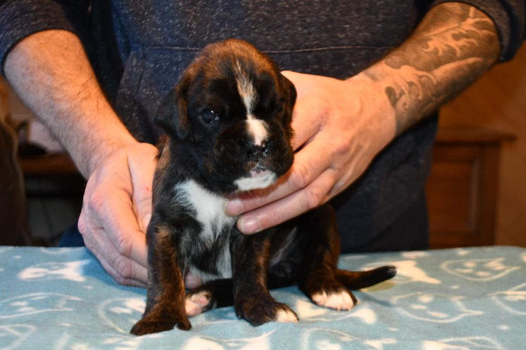 femelle bringée marquée en blanc - 585 gr - née par césarienne Star is Born est parti vivre en Moselle